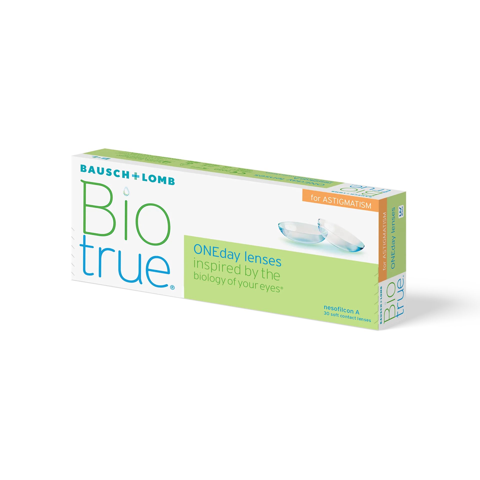Biotrue ONEday for Astigmatism ist eine innovative Ein-Tages-Kontaktlinse aus HyperGel - Inspiriert von der Natur Ihrer Augen. Dank dieser Inspirationsquelle ermöglicht Biotrue ONEday ein besonders komfortables Seherlebnis den ganzen Tag. Die Biotrue ONEday for Astigmatism-Kontaktlinsen haben nicht nur den gleichen Wassergehalt wie die Hornhaut (78%), sondern minimieren auch die Austrocknung der Kontaktlinsen nach dem Vorbild der Tränenflüssigkeit für andauernd hohe Feuchtigkeit. Sie liefern den notwendigen Sauerstoff für das Tagestragen. Als Kontaktlinsenträger profitieren Sie somit von einem exzellenten Komfort beim Tragen während des gesamten Tages. Biotrue ONEday for Astigmatism-Kontaktlinsen bieten Ihnen klares, scharfes Sehen den ganzen Tag bis in die Nacht. Das Auf- und Absetzen ist besonders einfach und am Ende des Tages können die Kontaktlinsen entsorgt werden, so dass kein Pflegemittel benötigt wird.