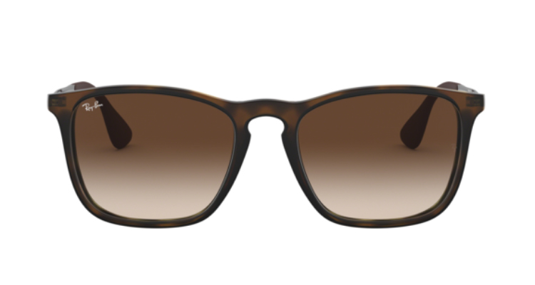 Die trapezförmigen Gläser mit grauer Verlaufstönung bieten, wie es sich für Ray-Ban gehört, einen optimalen UV-Schutz und dazu ein ausgesprochen breites Sichtfeld. Angelehnt an das Modell Erika von Ray-Ban, allerdings mit maskulinerer Optik, kommt auch der Nasensteg der RB 4187 in der formschönen und charakteristischen Schlüssellochform daher.