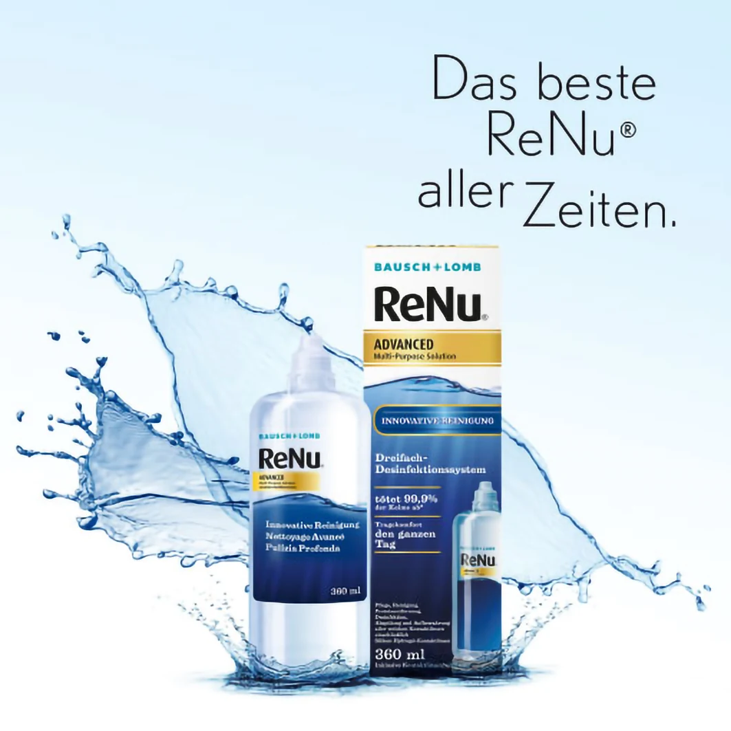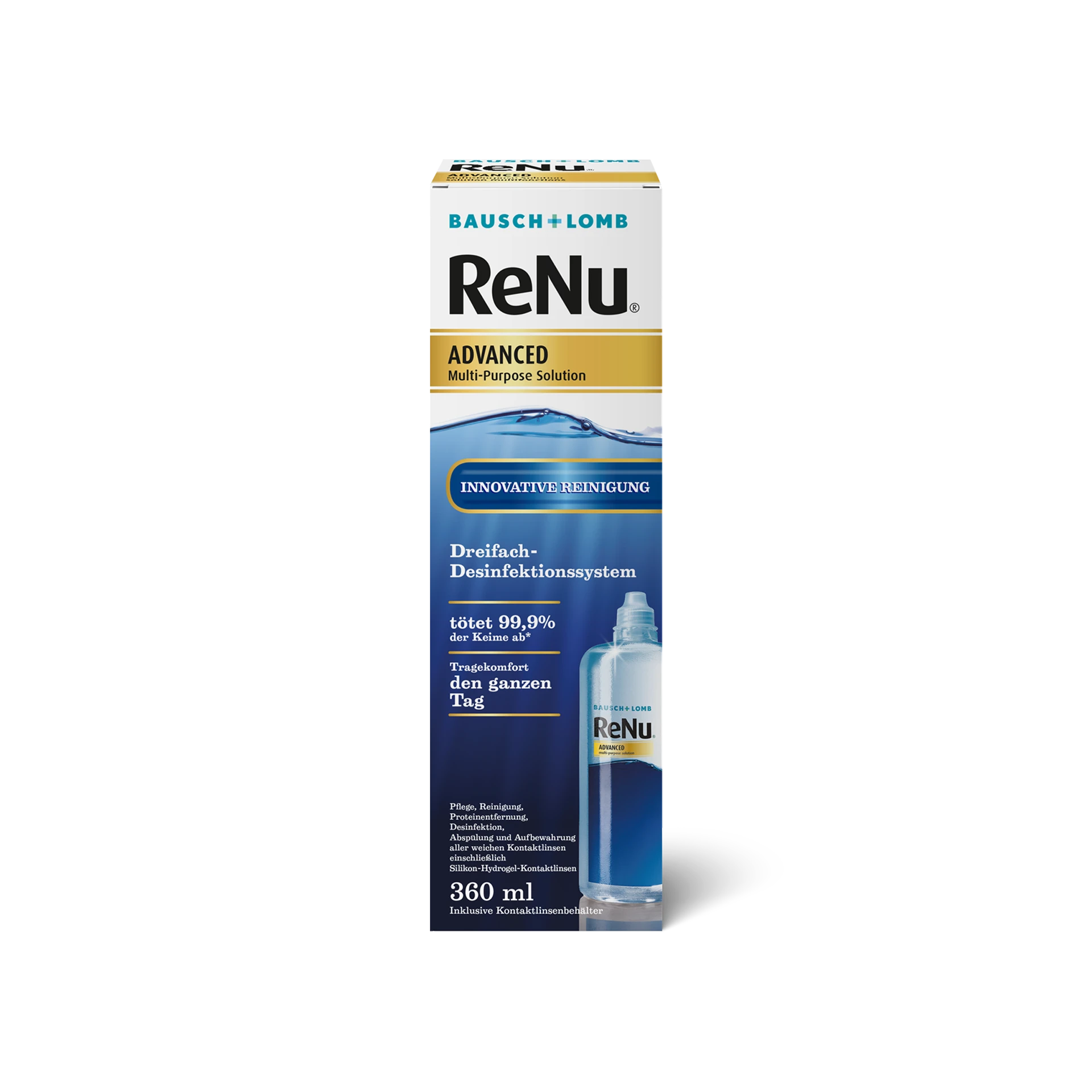 ReNu Advanced bietet nicht nur eine hervorragende Reinigung, sondern kann auch zum Abspülen verwendet werden. Darüber hinaus verfügt es über ein verbessertes Befeuchtungssystem, das ganztägigen Tragekomfort gewährleistet.