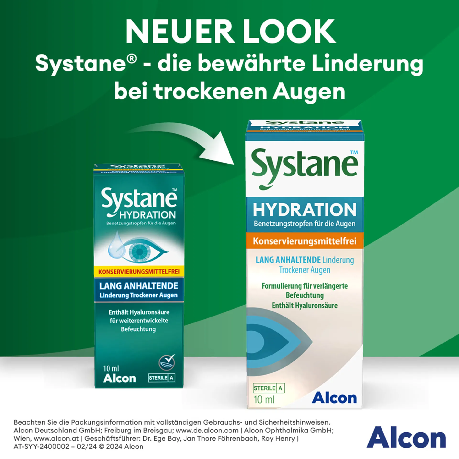 Lass Dich nicht von deinen Augen aufhalten und hol dir die langanhaltende Symptom-Linderung von Systane® hydration. Wenn du trockene Augen mit erhöhtem Feuchtigkeitsbedarf hast, ist Systane® hydration die Lösung für dich und kann helfen, deine Symptome zu lindern.